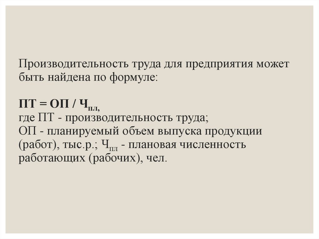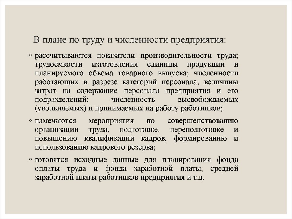 В плане по труду и численности предприятия:◦ рассчитываются показатели производительности труда;