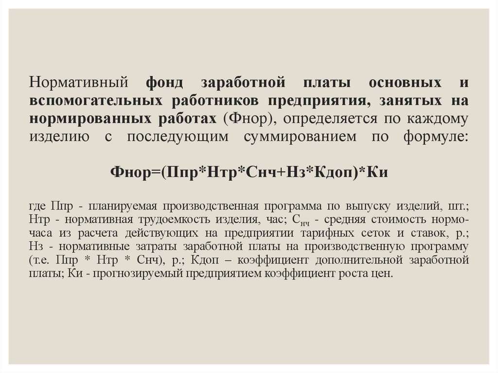ФОТп = ФОТб ± (∆ОП * ∆Нзп * ФОТб) / 100