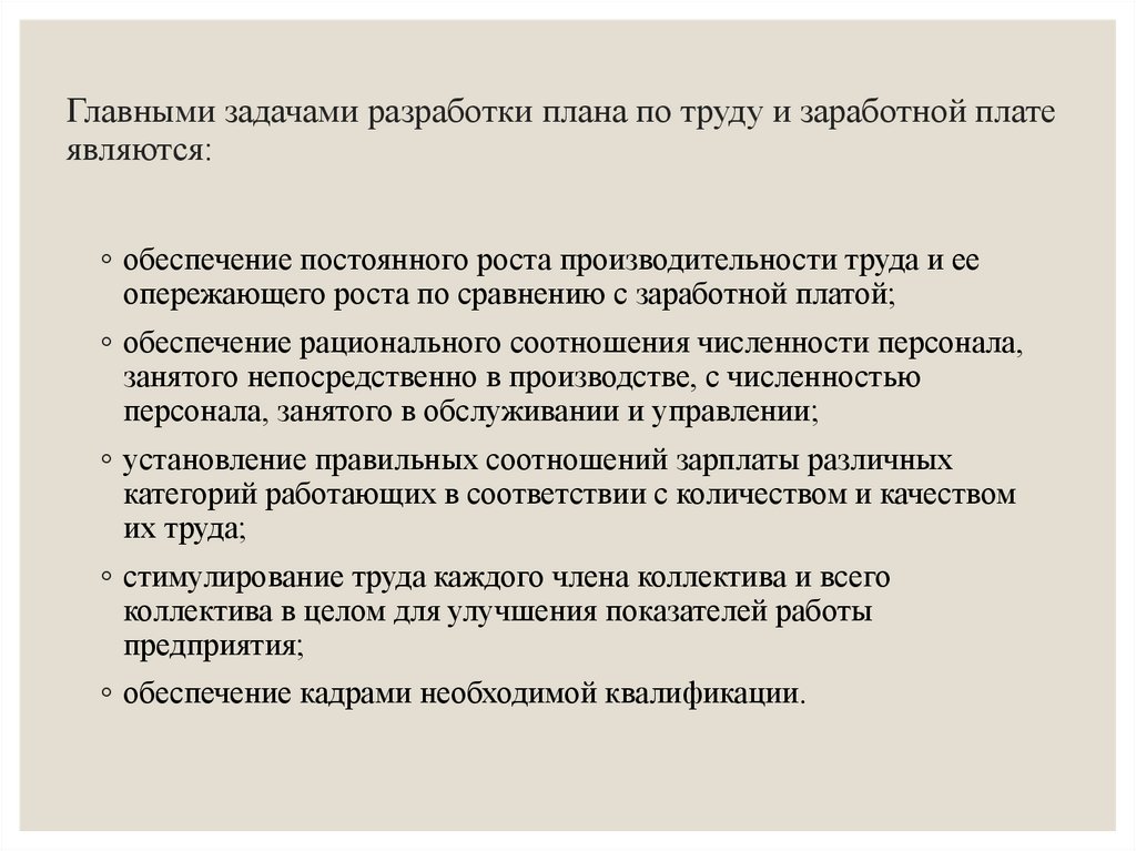Главными задачами разработки плана по труду и заработной платеявляются: