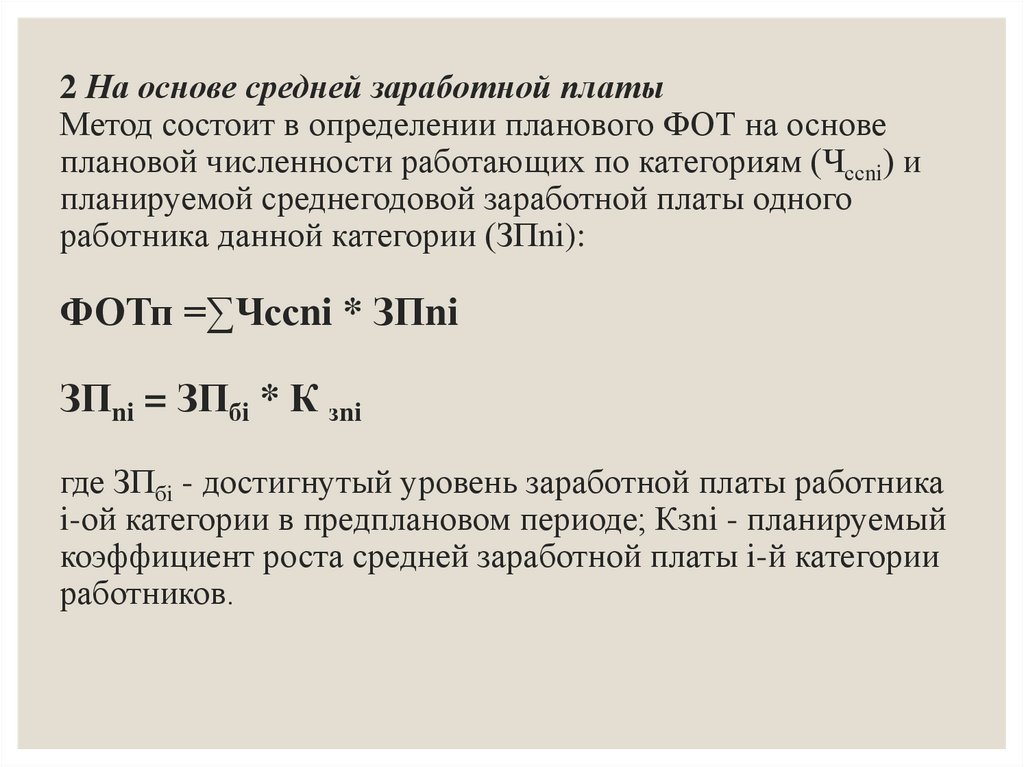 2 На основе средней заработной платыМетод состоит в определении планового ФОТ на основе