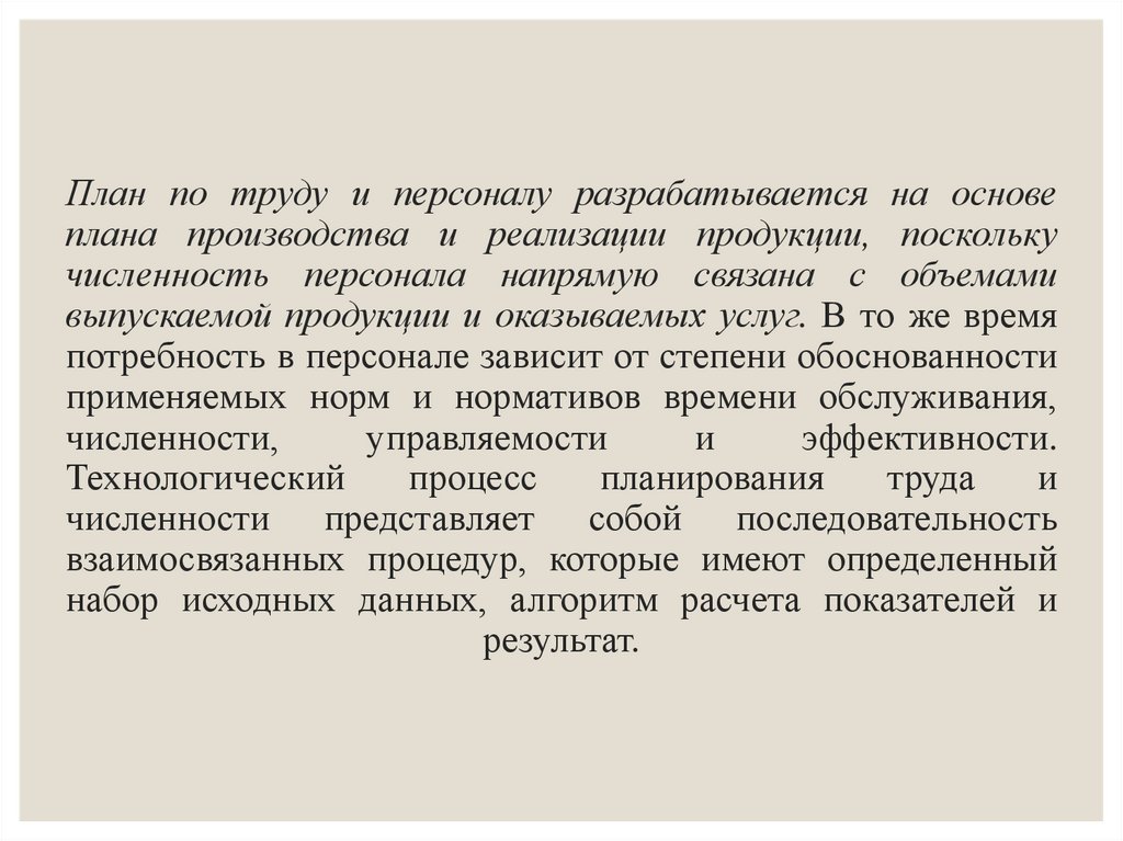 План по труду и персоналу разрабатывается на основеплана производства и реализации продукции, поскольку