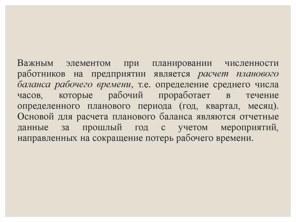 Важным элементом при планировании численностиработников на предприятии является расчет планового