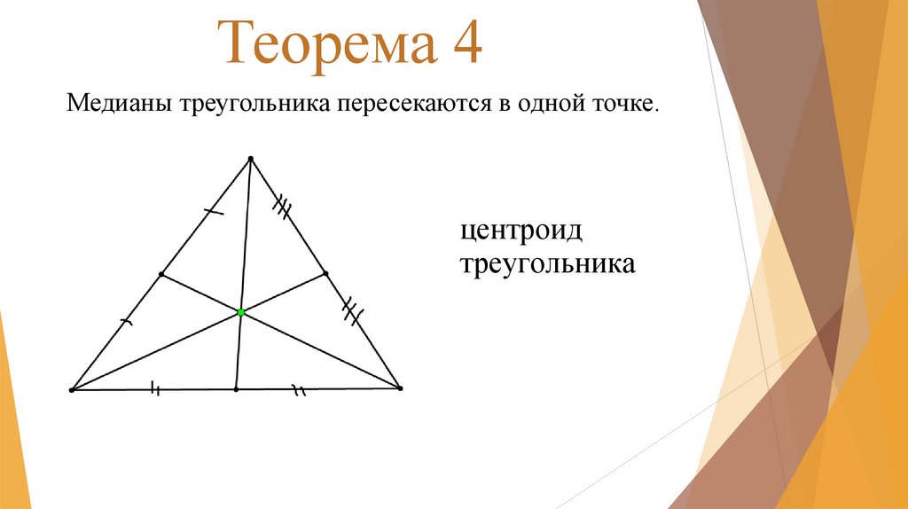 Теорема 4Медианы треугольника пересекаются в одной точке.