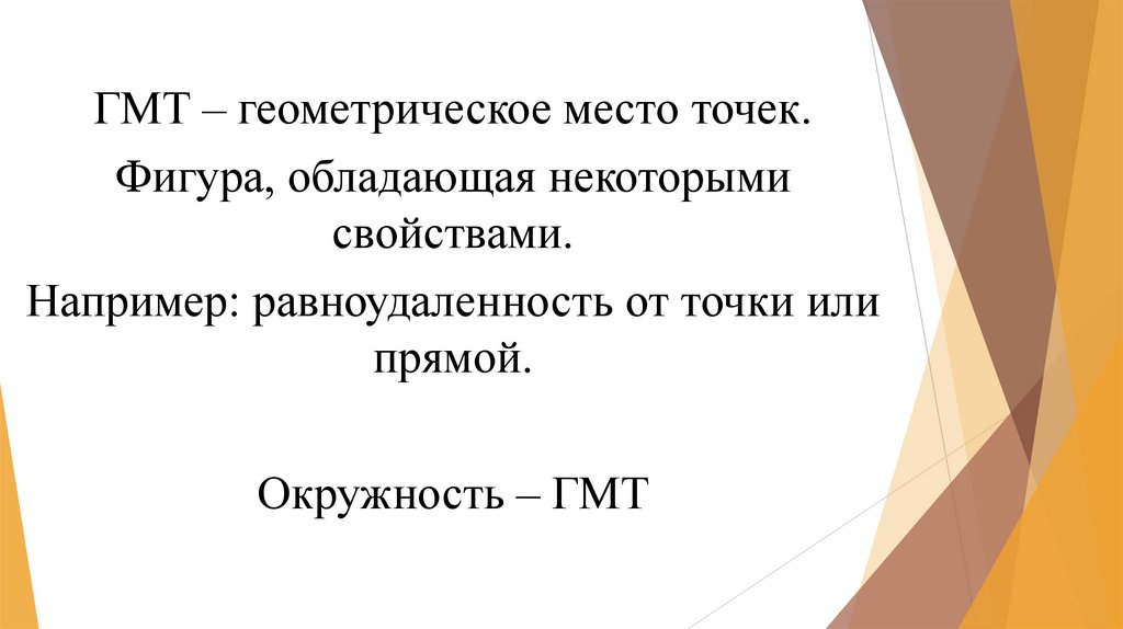 ГМТ – геометрическое место точек.Фигура, обладающая некоторыми