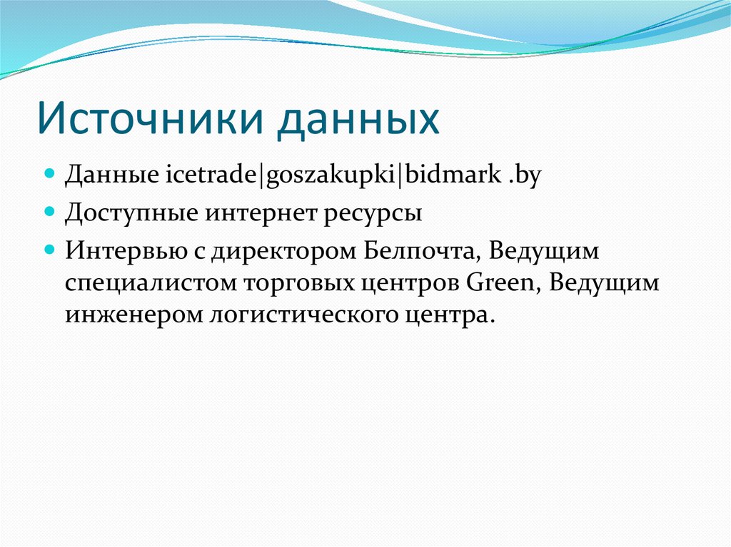 Источники данныхДанные icetrade|goszakupki|bidmark .by