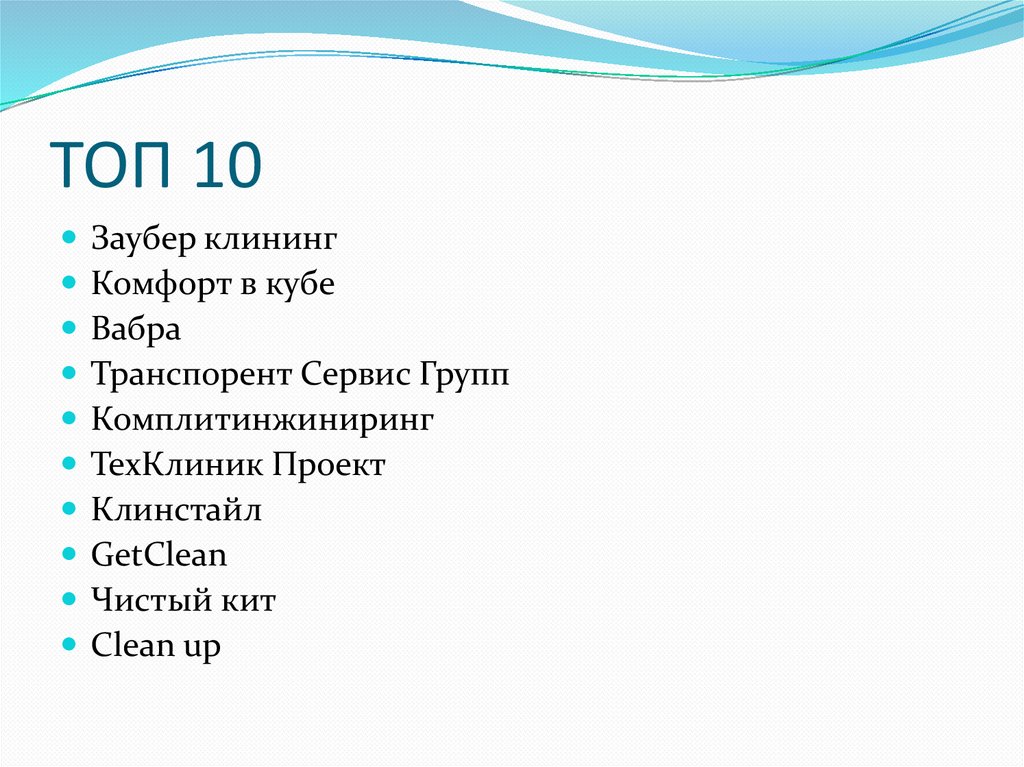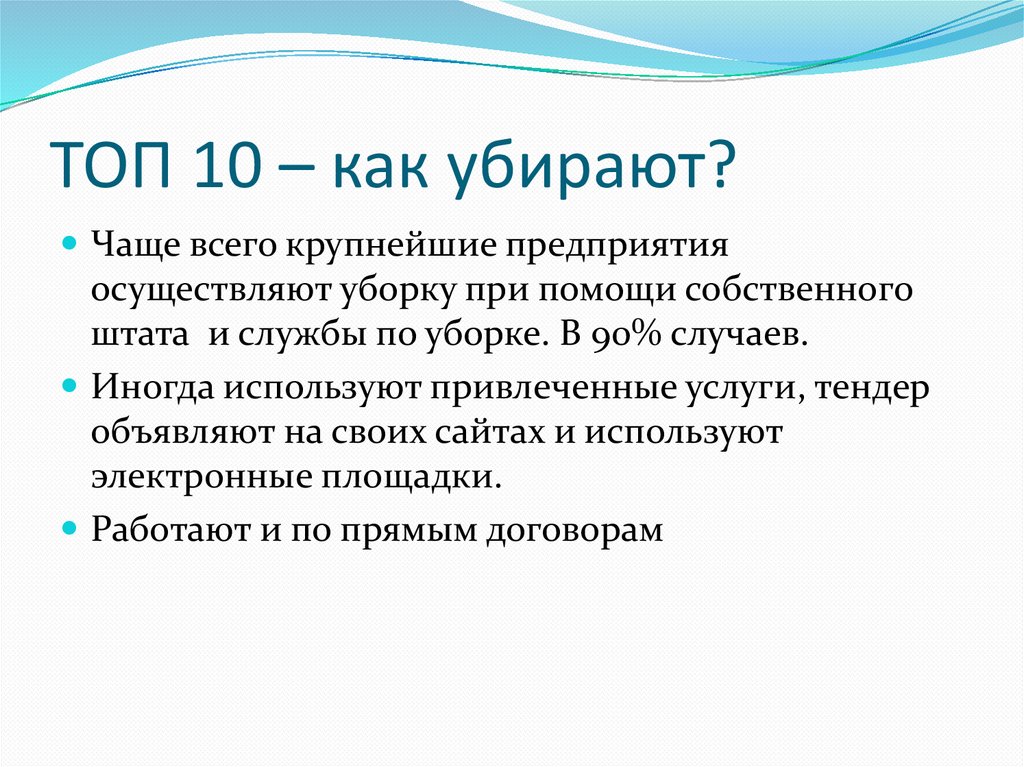 ТОП 10 – как убирают?Чаще всего крупнейшие предприятия