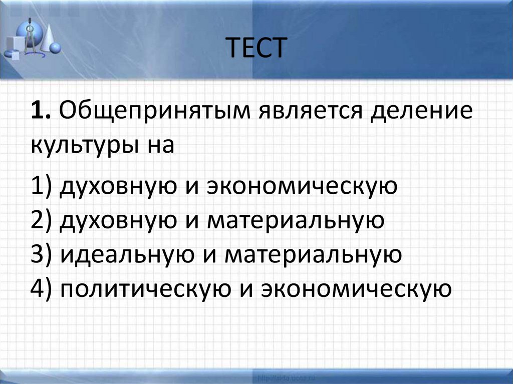 ТЕСТ1. Общепринятым является деление