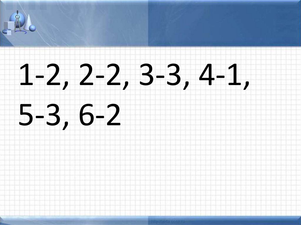 1-2, 2-2, 3-3, 4-1,5-3, 6-2