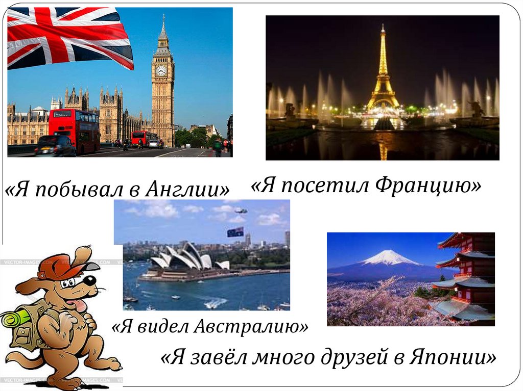 «Я побывал в Англии» «Я посетил Францию»«Я видел Австралию»