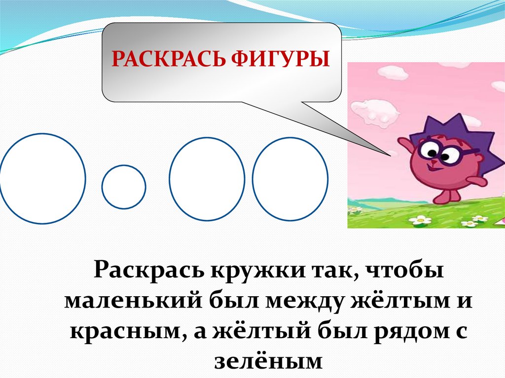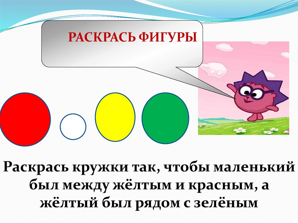 РАСКРАСЬ ФИГУРЫРаскрась кружки так, чтобы маленький