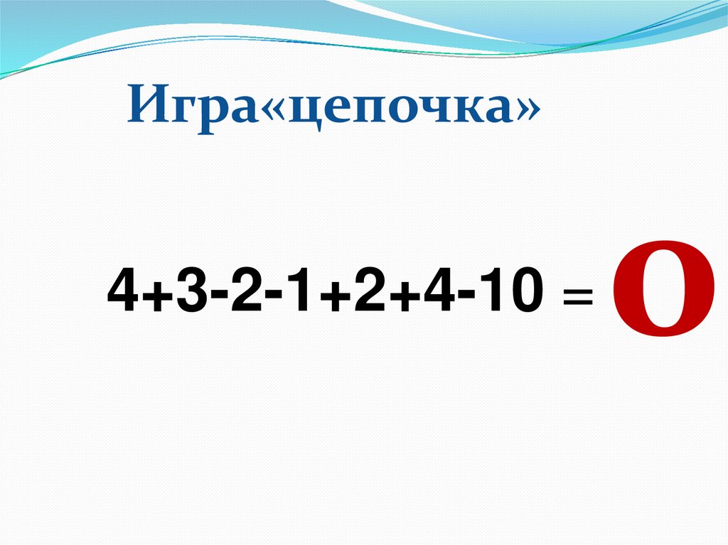 Игра«цепочка»4+3-2-1+2+4-10 =
