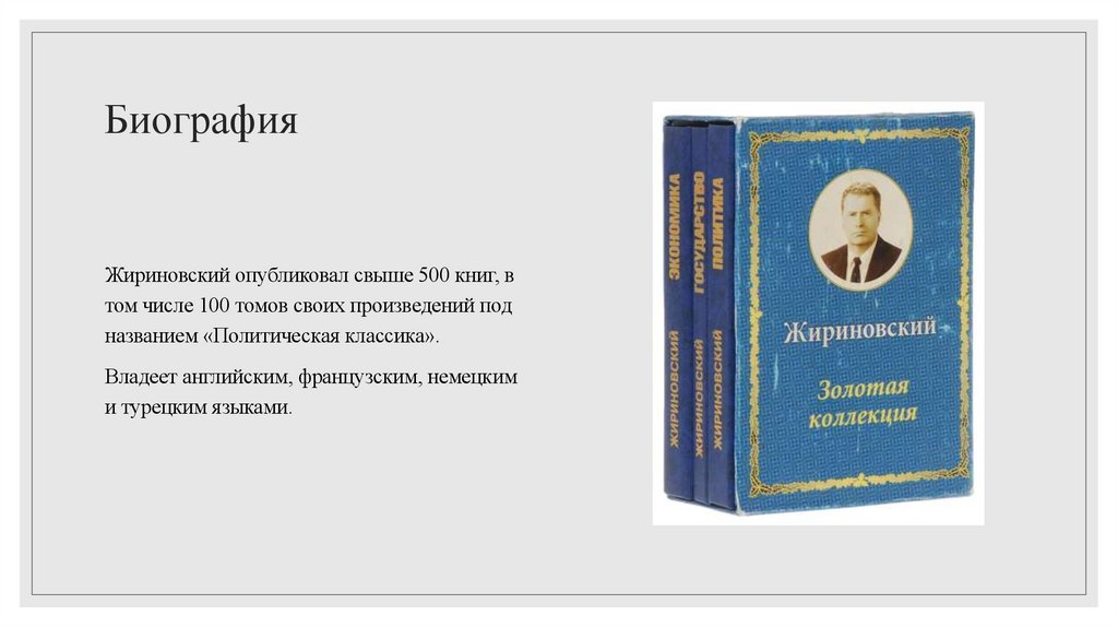 БиографияЖириновский опубликовал свыше 500 книг, в