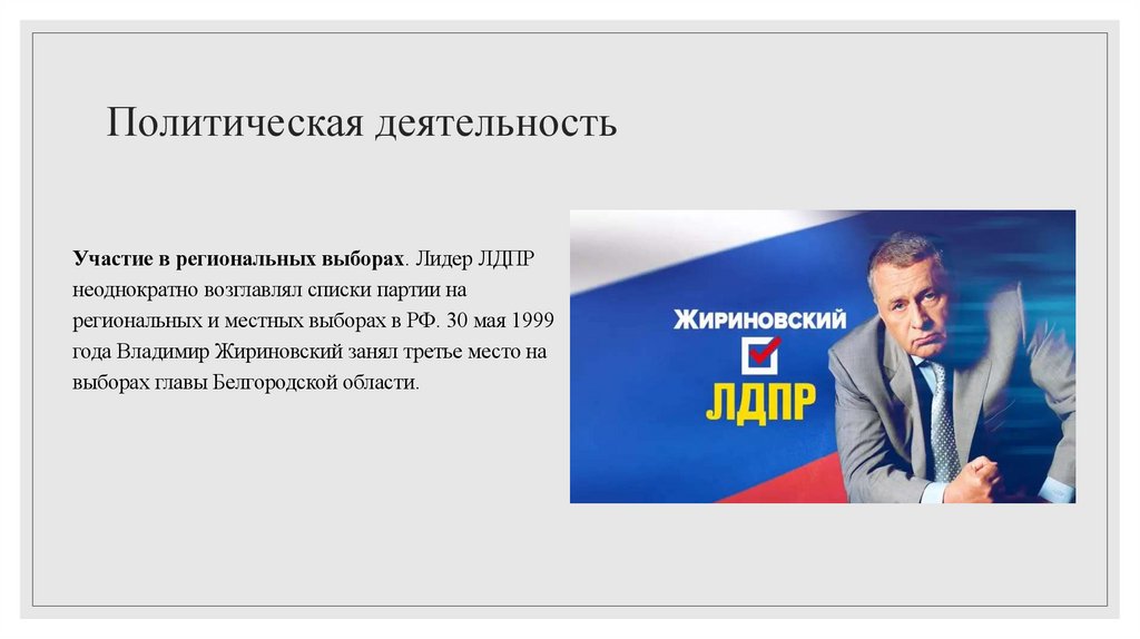 Политическая деятельностьУчастие в региональных выборах. Лидер ЛДПР