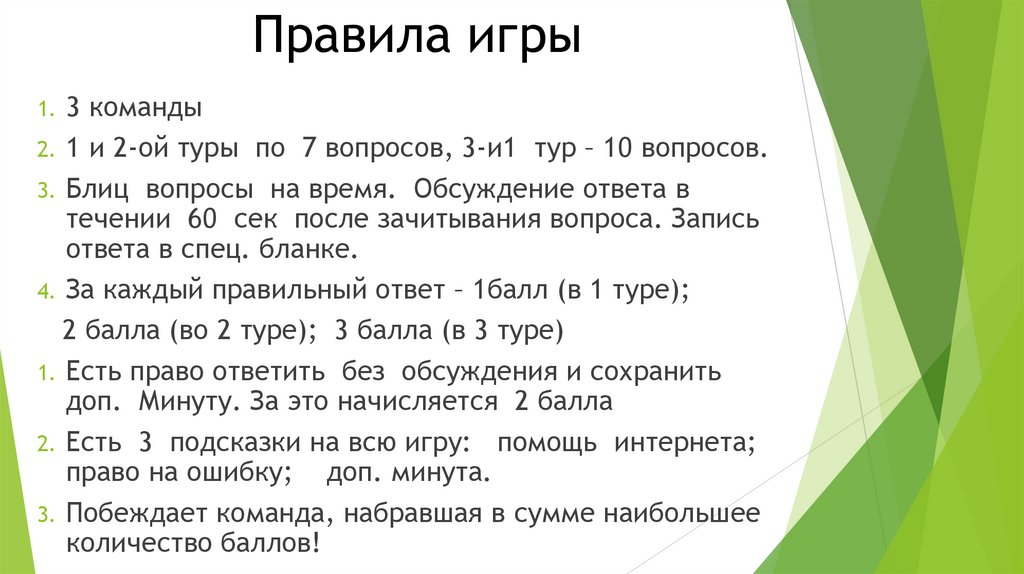 Правила игры1. 3 команды