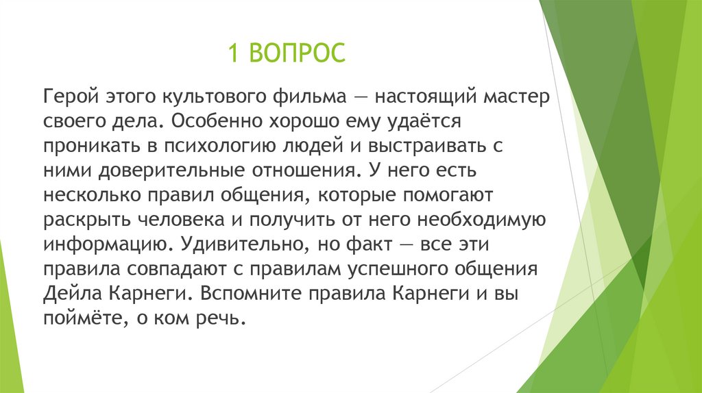 1 ВОПРОСГерой этого культового фильма — настоящий мастер