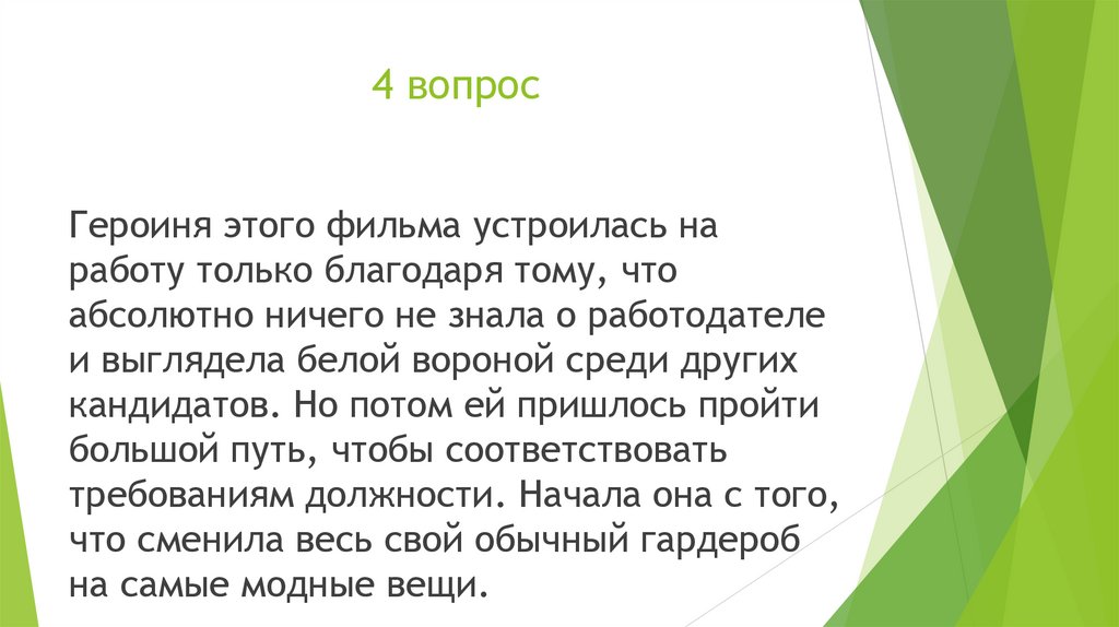 4 вопросГероиня этого фильма устроилась на