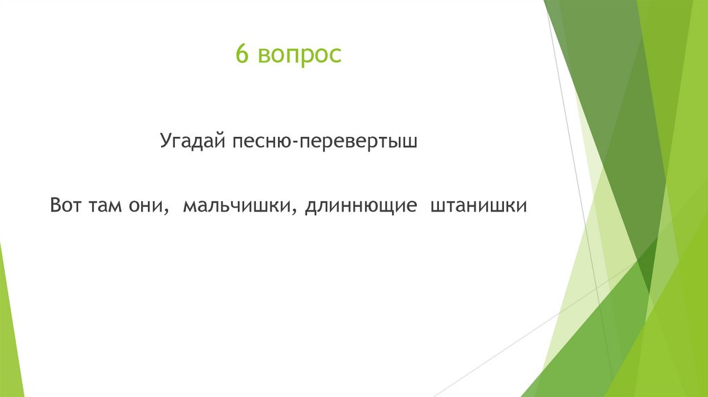 6 вопросУгадай песню-перевертыш