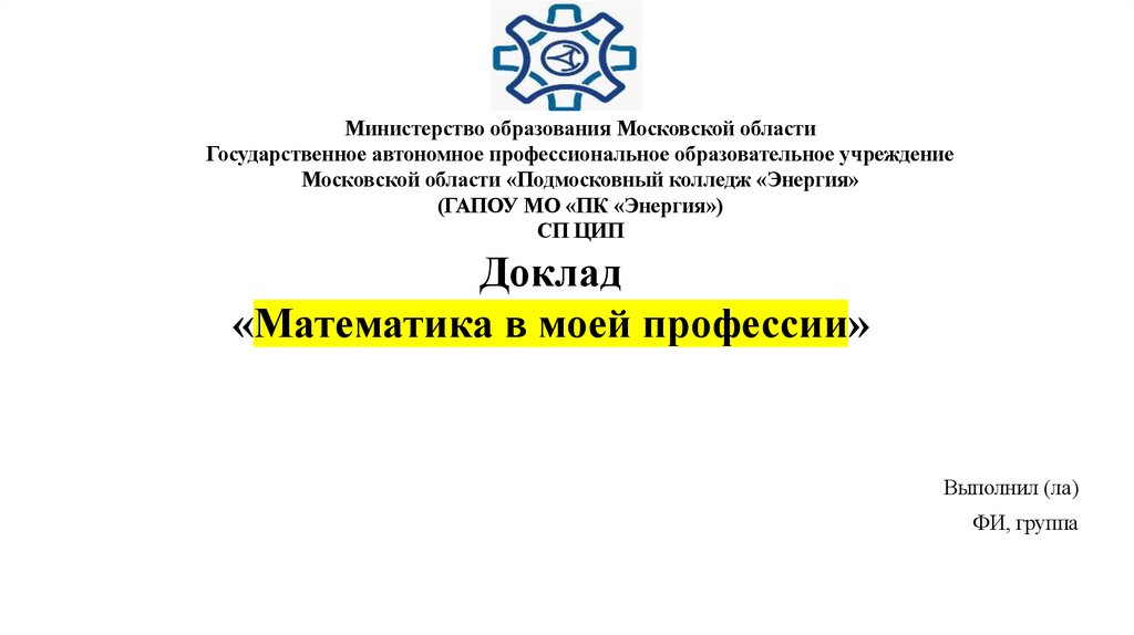 Московской области «Подмосковный колледж «Энергия»
