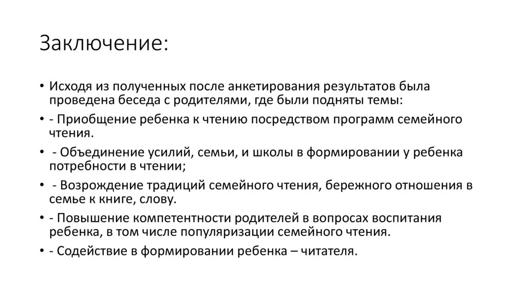 Заключение:• Исходя из полученных после анкетирования результатов была