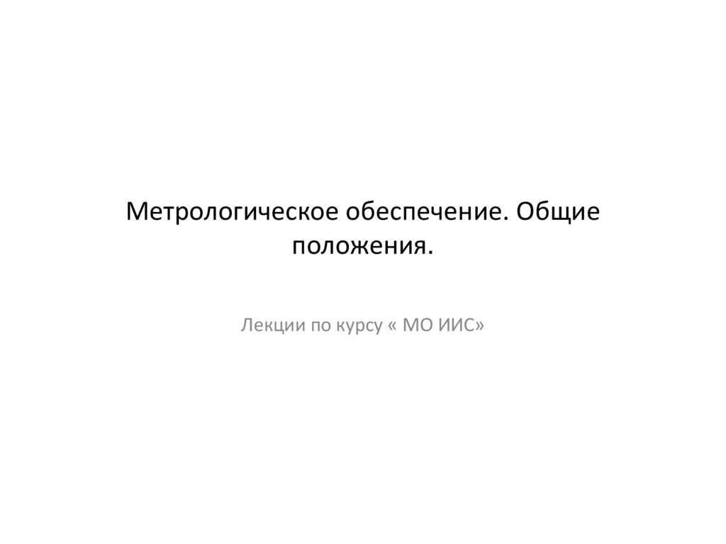 1. Метрологическое обеспечение. Общие положения.