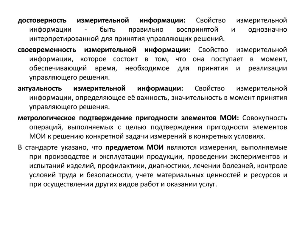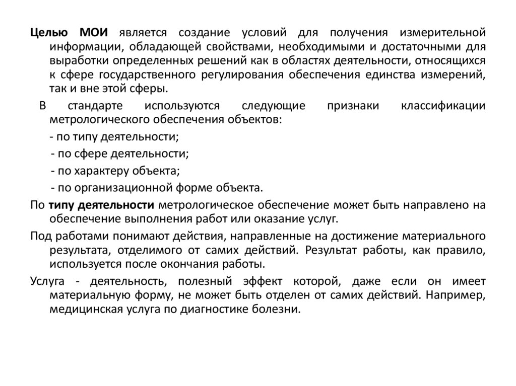Целью МОИ является создание условий для получения измерительнойинформации, обладающей свойствами, необходимыми и достаточными для