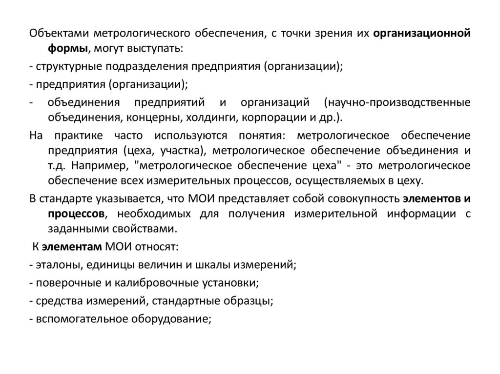Объектами метрологического обеспечения, с точки зрения их организационнойформы, могут выступать: