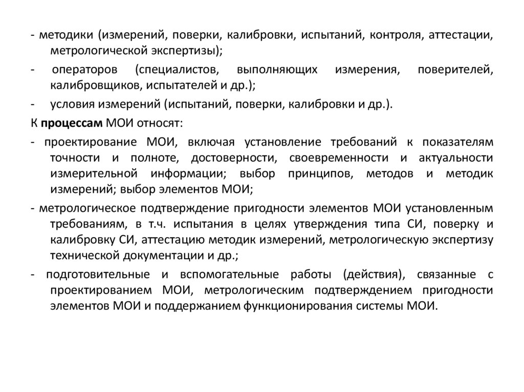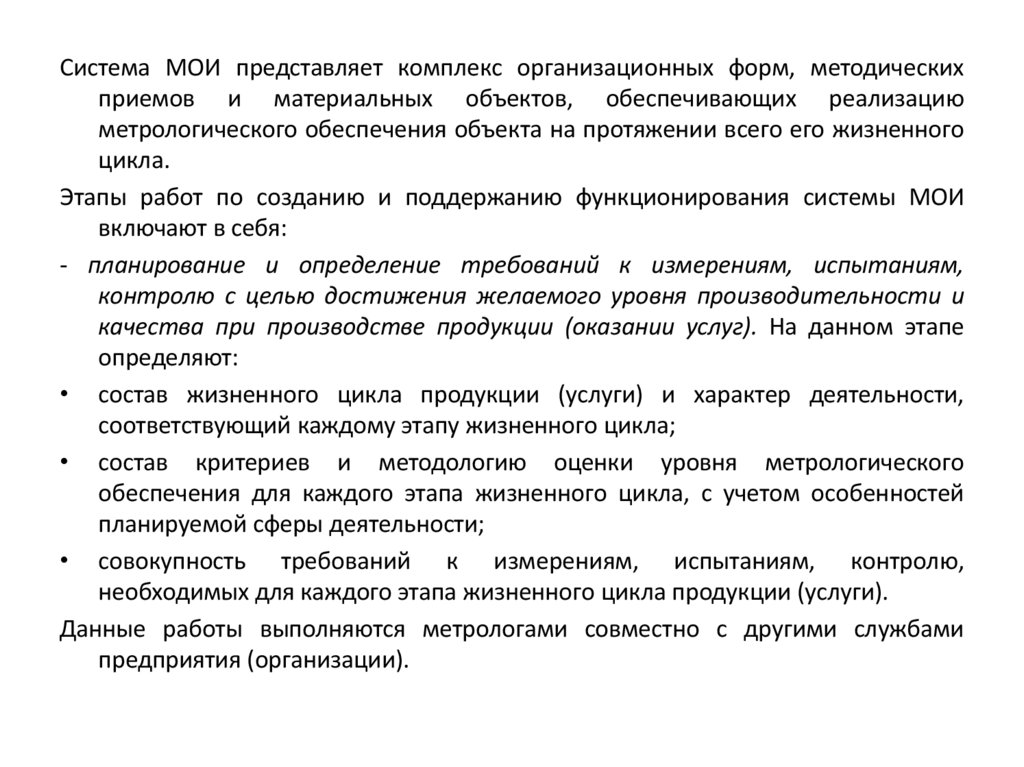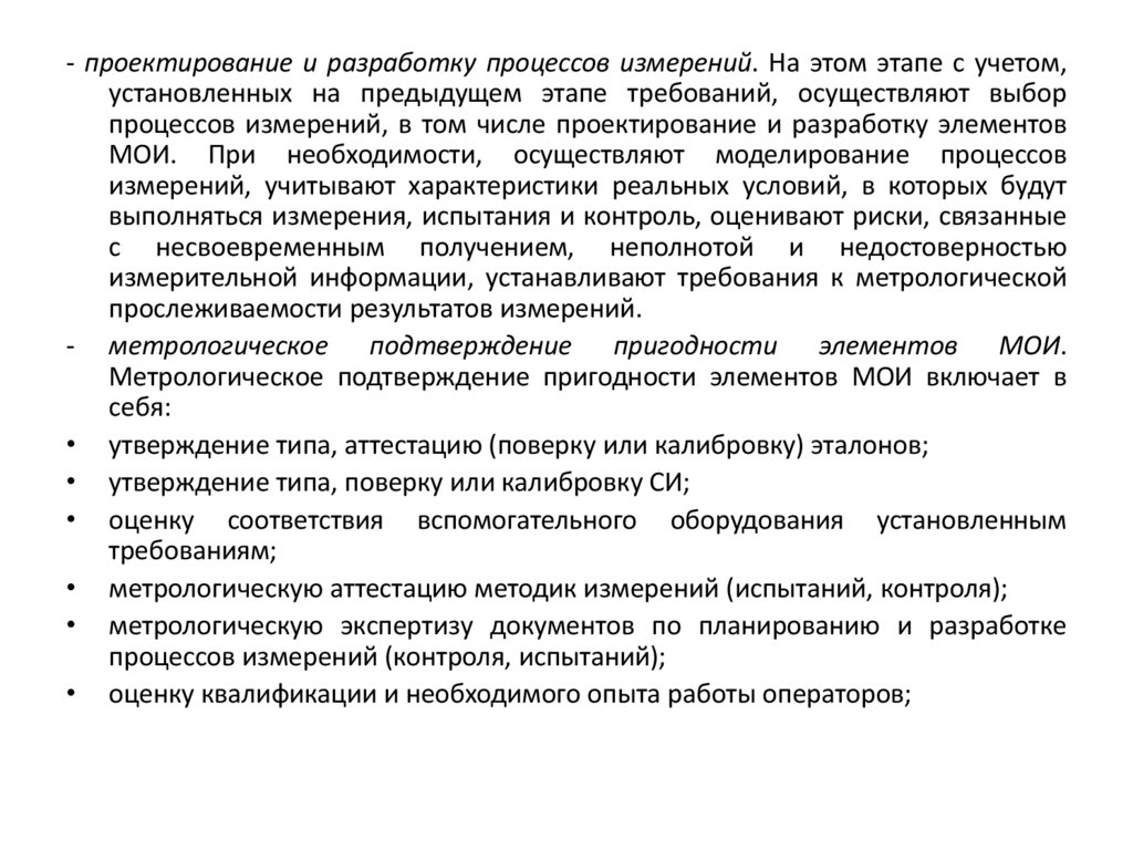 проектированием МОИ, метрологическим подтверждением пригодности