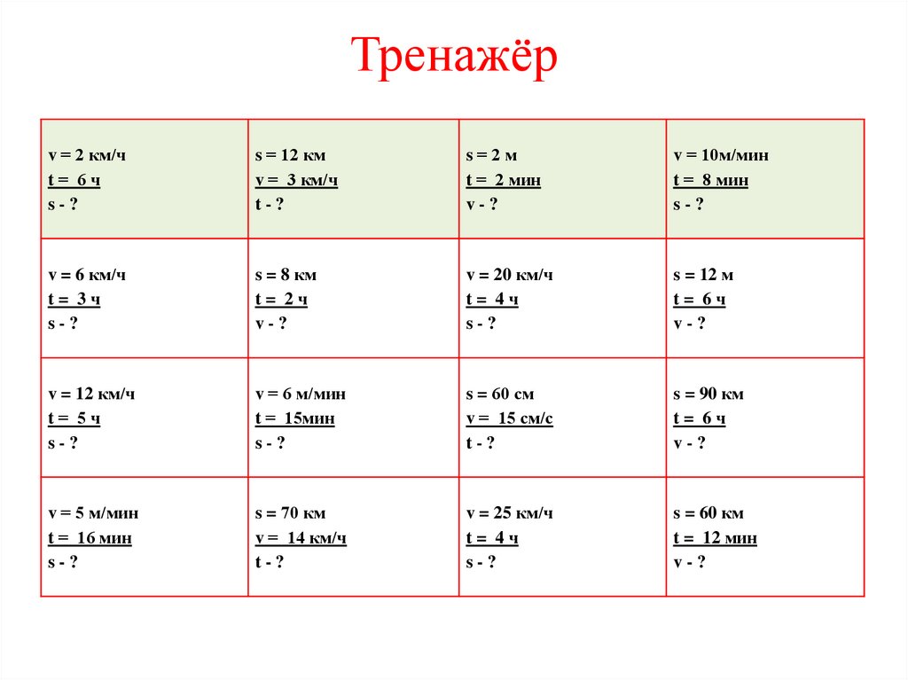 Тренажёрv = 2 км/ч