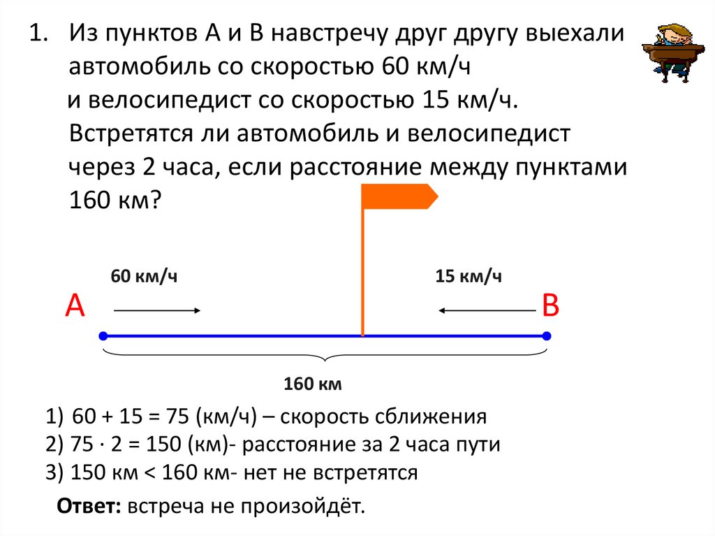 3) 150 км < 160 км- нет не встретятся