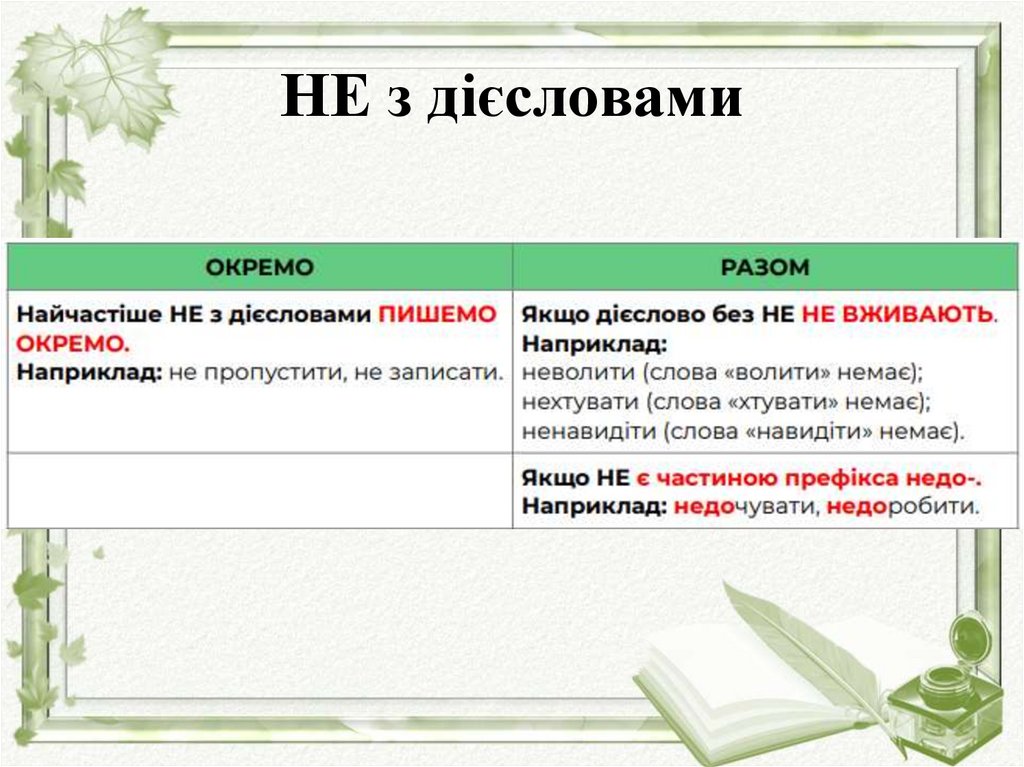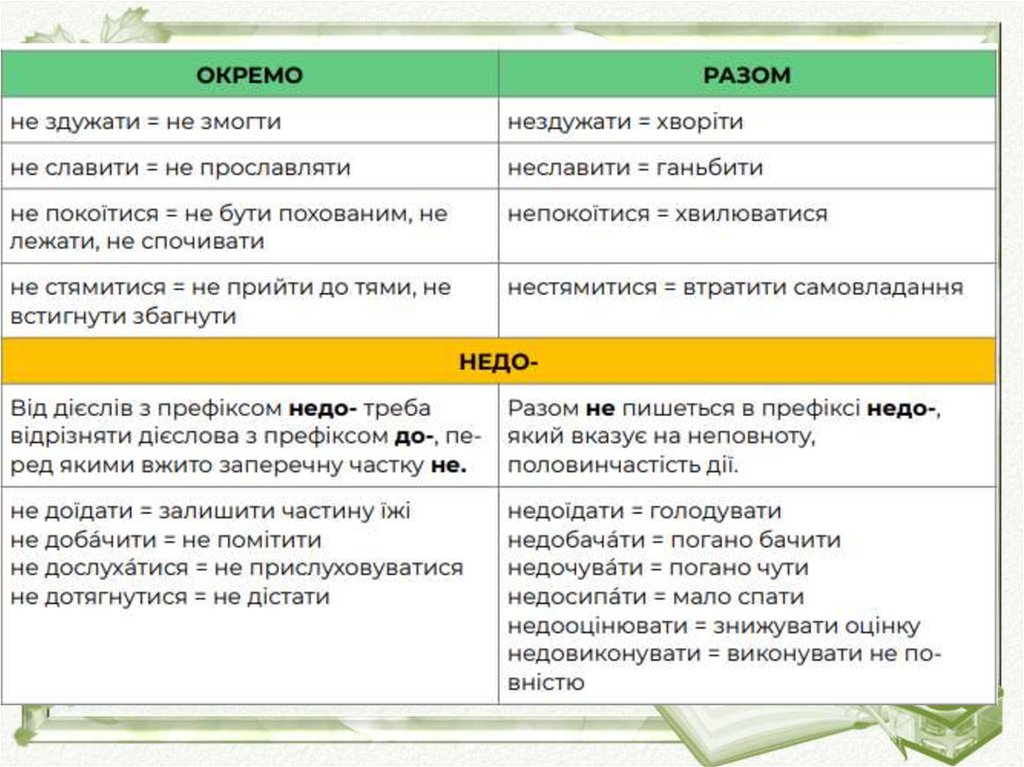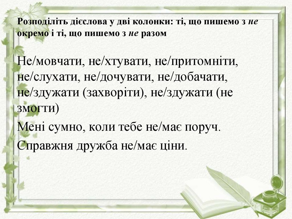 15. Розподіліть дієслова у дві колонки: ті, що пишемо з не окремо і ті, що пишемо з не разом