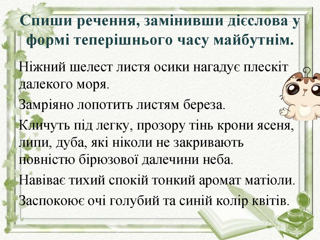 10. Спиши речення, замінивши дієслова у формі теперішнього часу майбутнім.