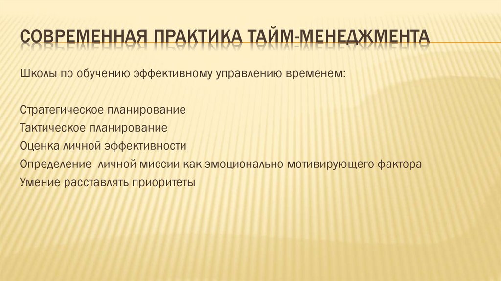 СОВРЕМЕННАЯ ПРАКТИКА ТАЙМ-МЕНЕДЖМЕНТАШколы по обучению эффективному управлению временем: