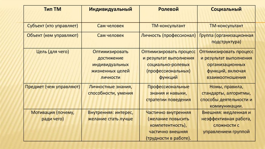 ТИПЫ ТАЙМ-МЕНДЖМЕНТАПерсональный/индивидуальный