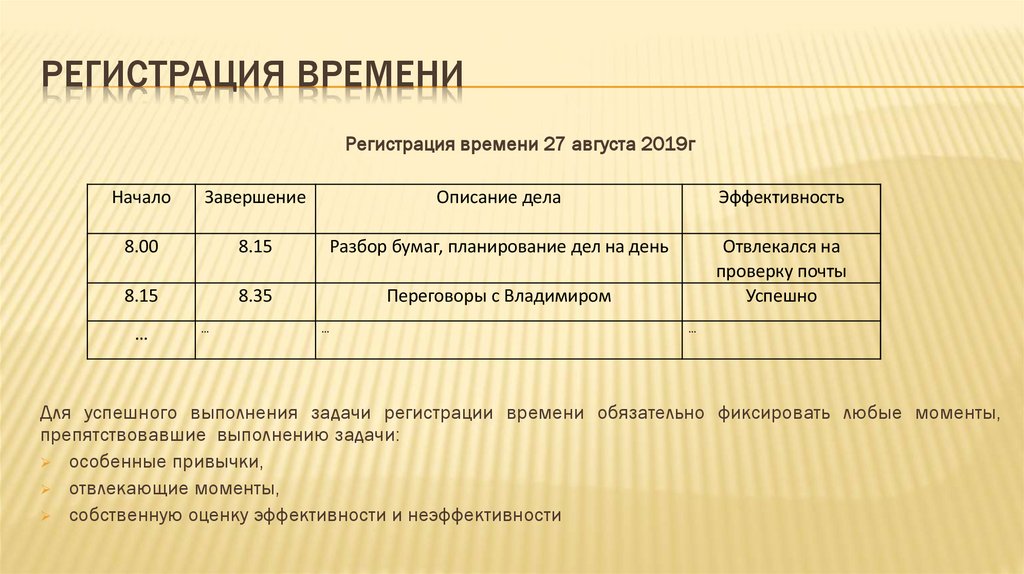 РЕГИСТРАЦИЯ ВРЕМЕНИРегистрация времени 27 августа 2019г