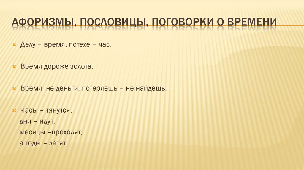 АФОРИЗМЫ, ПОСЛОВИЦЫ, ПОГОВОРКИ О ВРЕМЕНИДелу – время, потехе – час.