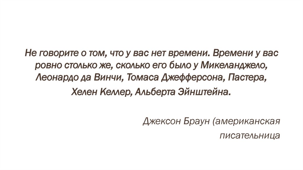 Не говорите о том, что у вас нет времени.Времени у вас ровно столько же, сколько его