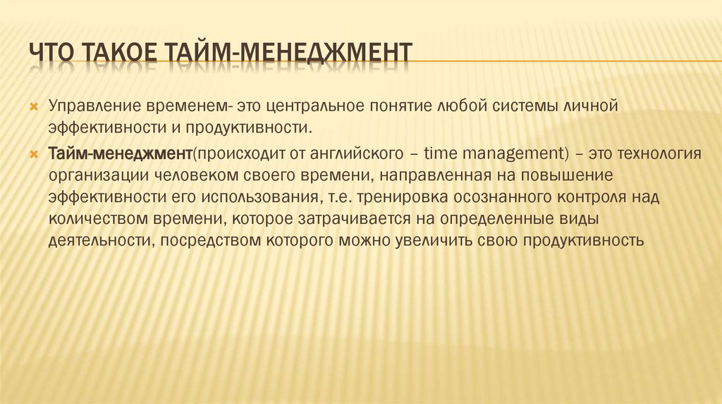 ЧТО ТАКОЕ ТАЙМ-МЕНЕДЖМЕНТУправление временем- это центральное понятие любой системы личной