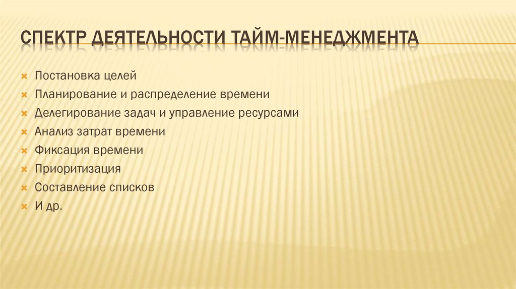 СПЕКТР ДЕЯТЕЛЬНОСТИ ТАЙМ-МЕНЕДЖМЕНТАПостановка целей