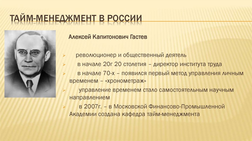 ТАЙМ-МЕНЕДЖМЕНТ В РОССИИАлексей Капитонович Гастев
