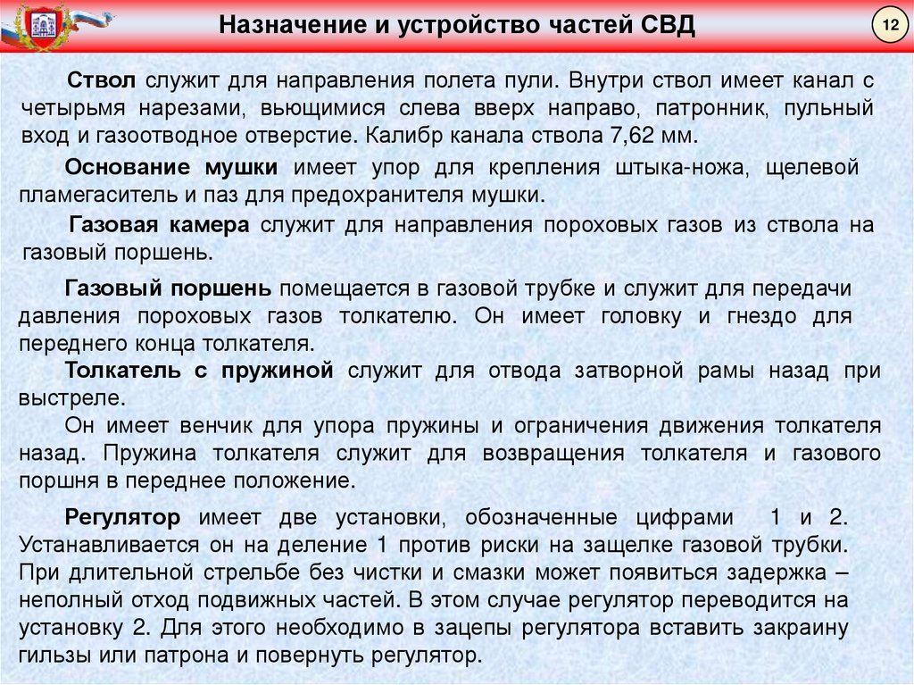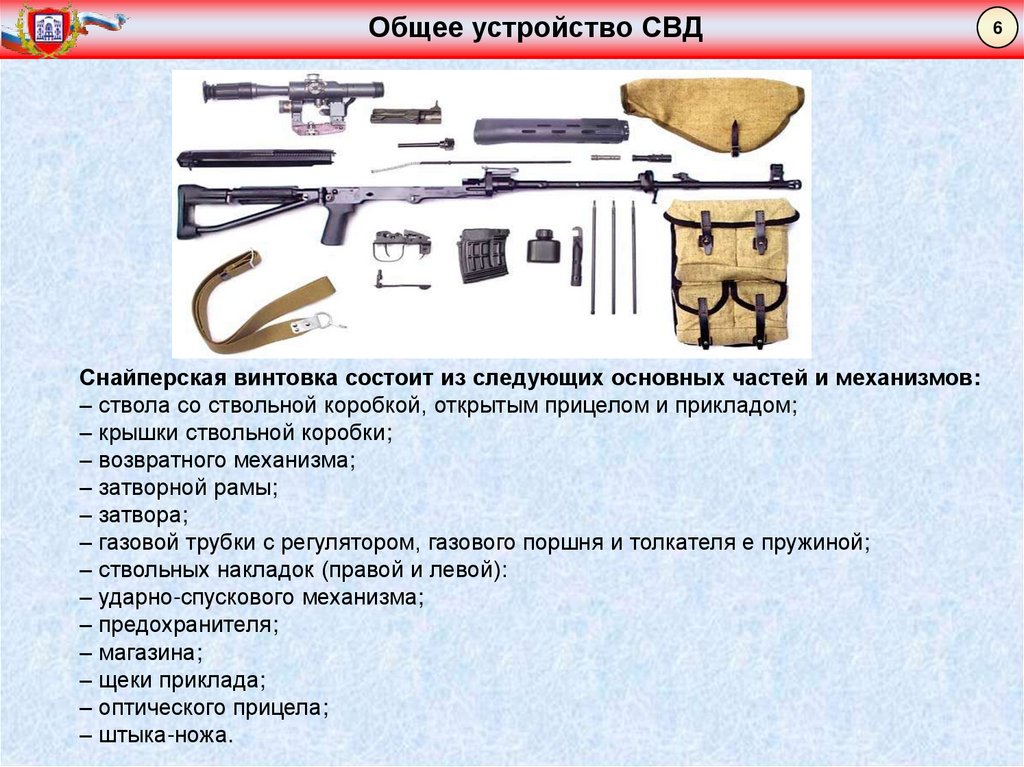 8. Снайперская винтовка Драгунова. Основные части и механизмы СВД,