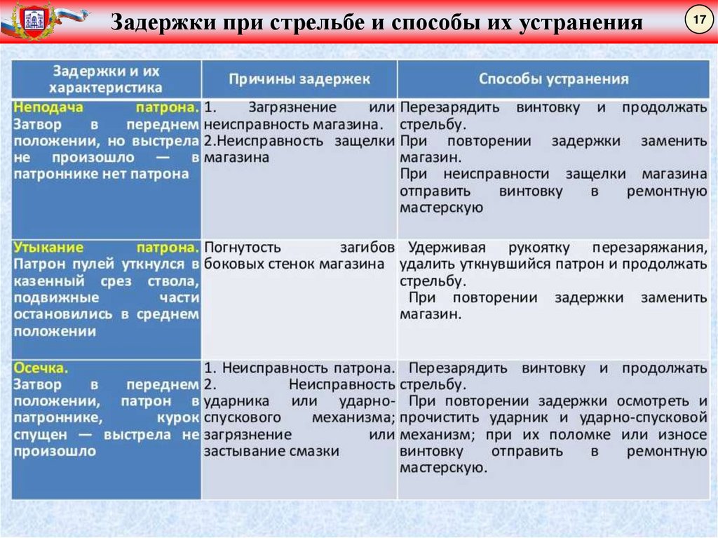 9. Работа частей и механизмов, задержки при стрельбе из снайперской