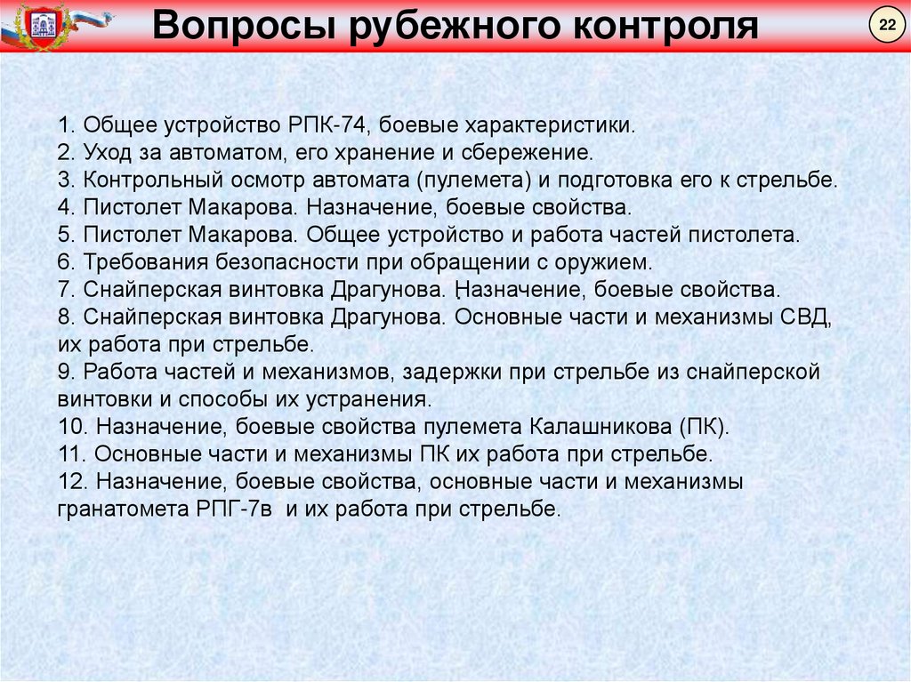 Вопросы рубежного контроля1. Общее устройство РПК-74, боевые характеристики.