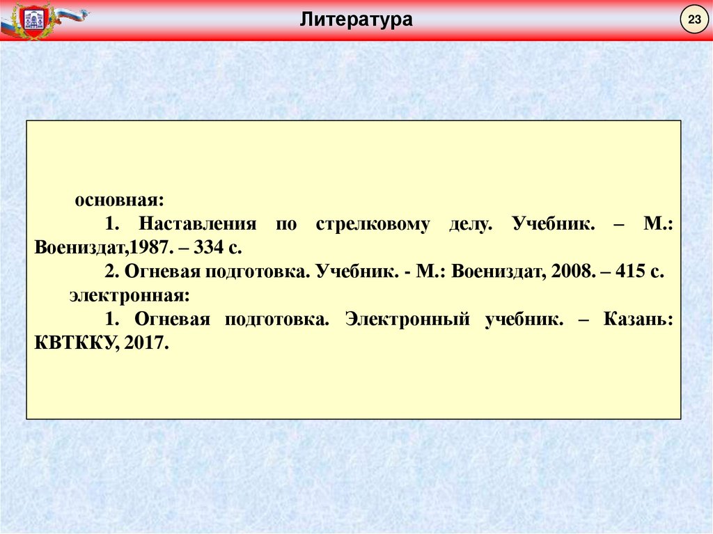 1. Наставления по стрелковому делу. Учебник. – М.: