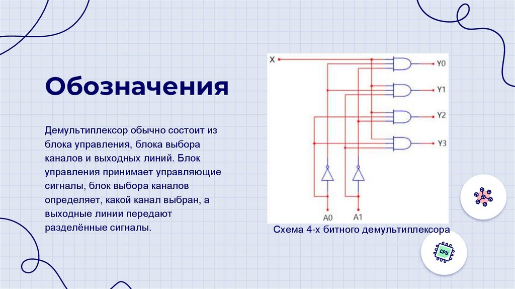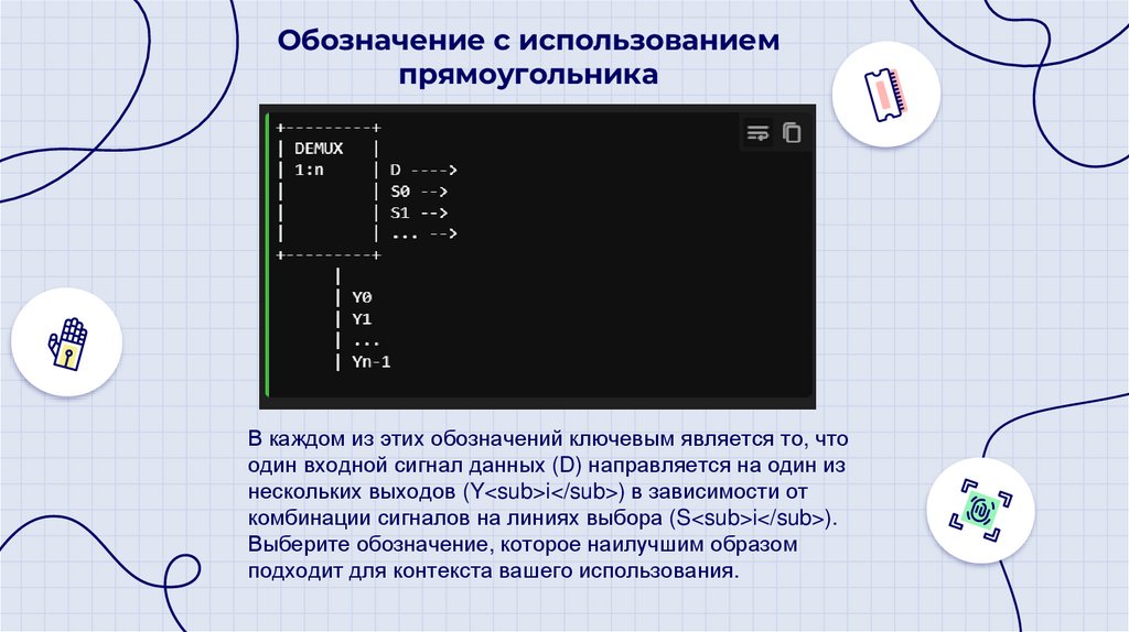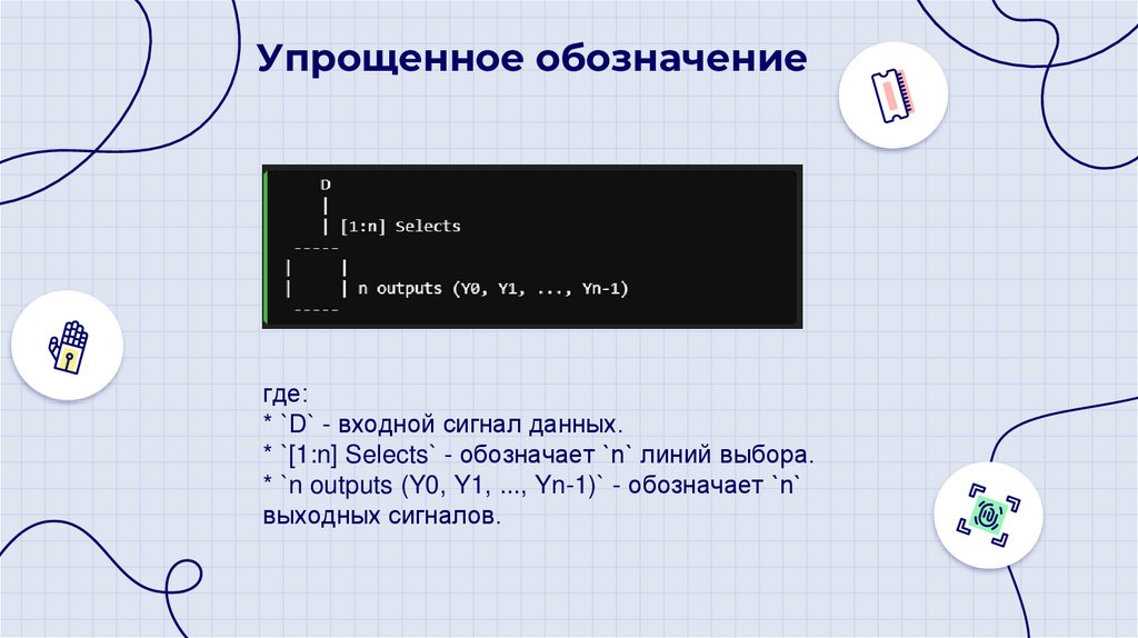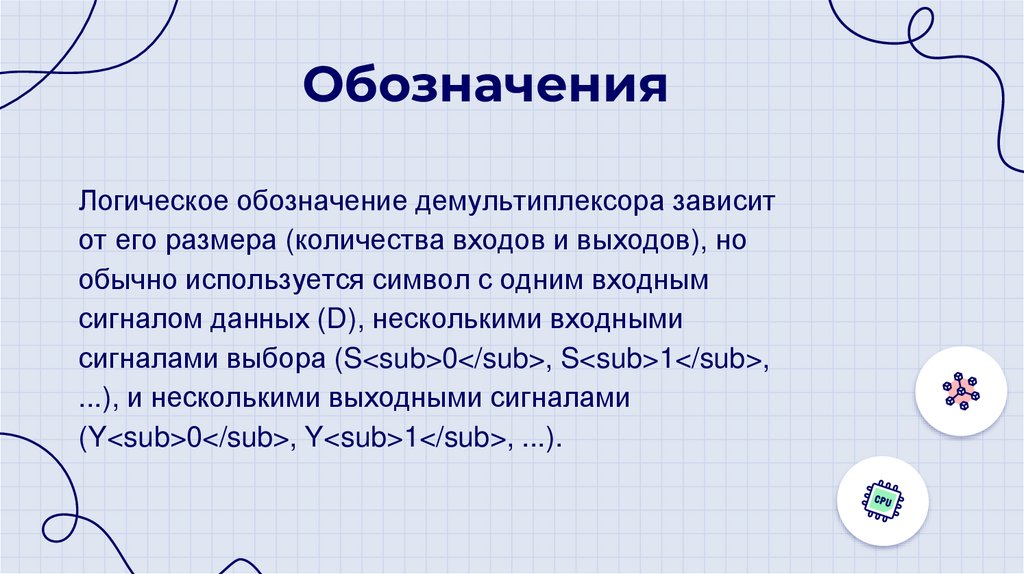 ОбозначенияЛогическое обозначение демультиплексора зависит