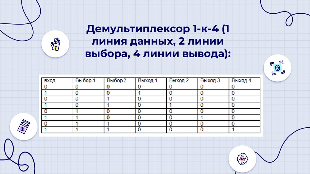 Демультиплексор 1-к-4 (1линия данных, 2 линии