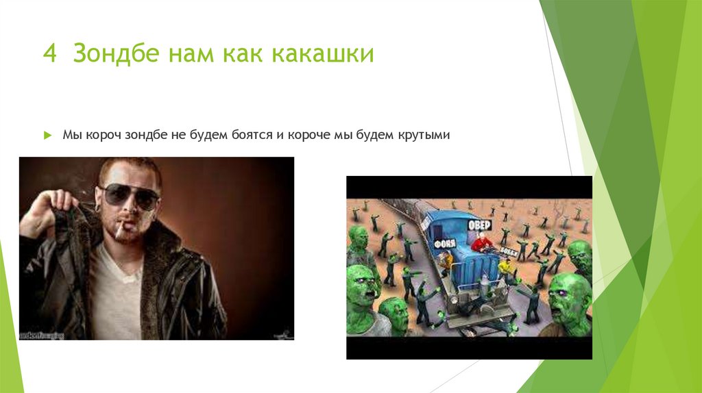 4 Зондбе нам как какашкиМы короч зондбе не будем боятся и короче мы будем крутыми