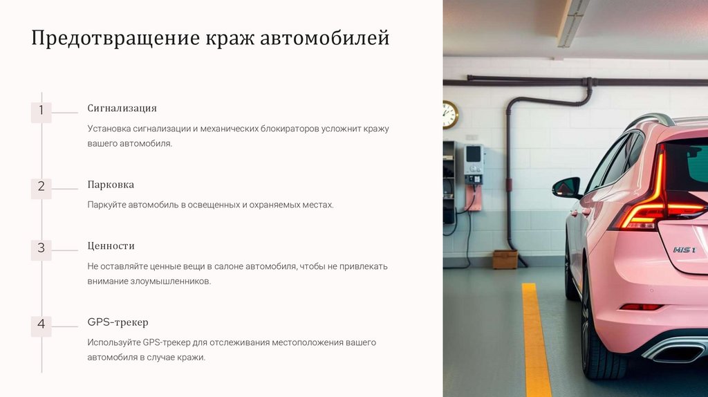 Паркуйте автомобиль в освещенных и охраняемых местах.