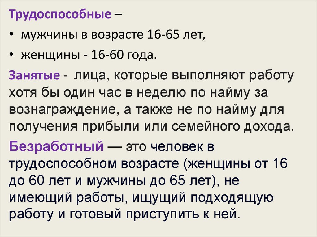 Трудоспособные –• мужчины в возрасте 16-65 лет,