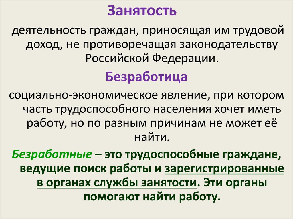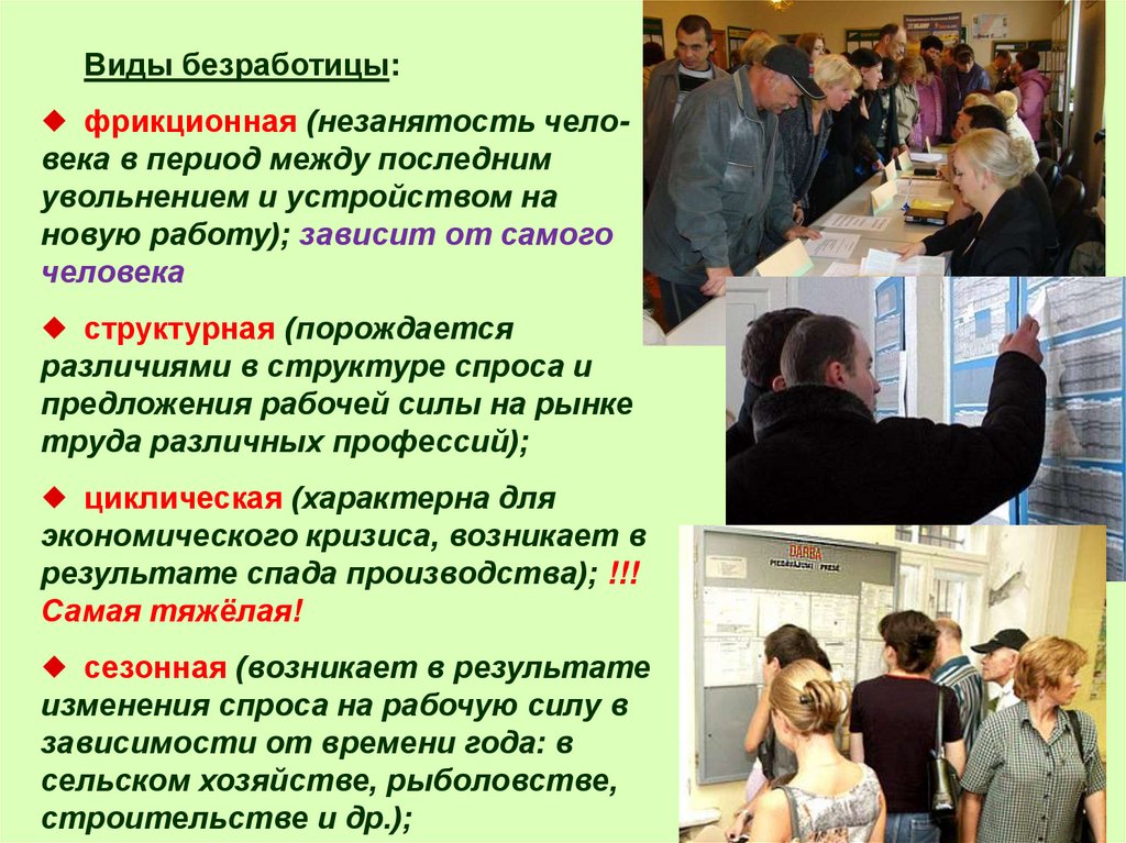 Виды безработицы:фрикционная (незанятость человека в период между последним