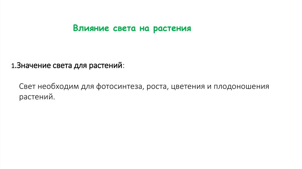 Свет необходим для фотосинтеза, роста, цветения и плодоношения